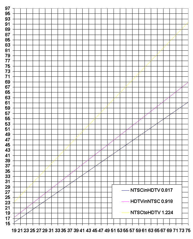 Scale factor from NTSC diagonal to viewable HDTV diagonal [HDTVinNTSC]